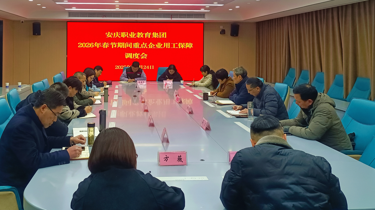 12月24日下午,安慶職教集團在安慶職業(yè)技術(shù)學(xué)院召開春節(jié)期間園區(qū)重點企業(yè)用工保障調(diào)度會。安慶職教集團副理事長、秘書長李克讓主持會議。安慶技師學(xué)院、安慶工業(yè)學(xué)校、安徽理工學(xué)校、安徽化工學(xué)校等集團內(nèi)城區(qū)中職、技工院校主要負責(zé)人,安慶職業(yè)技術(shù)學(xué)院6個二級學(xué)院主要負責(zé)人參會。